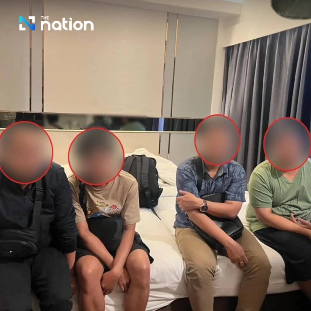 ထို့နောက် လေဆိပ်နှင့် ၃ ကိလိုမီတာခန့်အကွာ လတ်ကရာဘန် Soi 30/4 ၊ Grand BS Airport Hotel Suvarnabhumi ရှိ အခန်းတစ်ခန်းကို ရဲများက ဝင်ရောက်ဖမ်းဆီးခဲ့ရာ သံသယရှိသူ အသက် ၃၂ နှစ်အရွယ် ဇွဲထက်အောင်၊ ၂၄ နှစ်အရွယ် စနေလင်းထက်၊ ၂၁ နှစ်အရွယ် ကျော်ဇင်ဟိန်းနှင့် ၃၄ နှစ်အရွယ် သိန်းဇော်တို့ကို ဖမ်းဆီးရမိခဲ့ခြင်း ဖြစ်သည်။