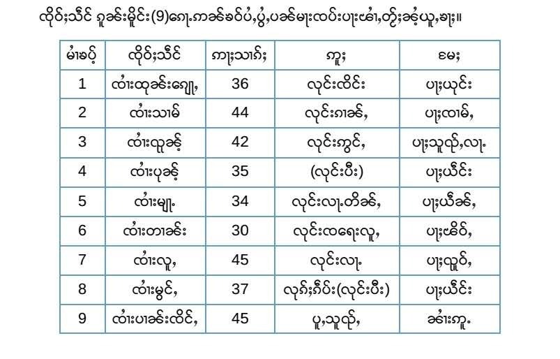 သျှမ်းပြည် လားရှိုးမြို့နယ် မန်စယ်ကျေးရွာအုပ်စုရှိ ဒေသခံလယ်မြေတွင် ရွှေတူးဖော်နေသည့် ကိုးကန့်တပ်ဖွဲ့ (MNDAA) ကို ဆန္ဒပြသူ (၃၆) ဦး သိန္နီမြို့ဘက်သို့ ဖမ်းဆီးခေါ်ဆောင်သွားခံရပြီး (၉) ဦးမှာ ပြန်မလွတ်သေးကြောင်း စုံစမ်းသိရသည်။