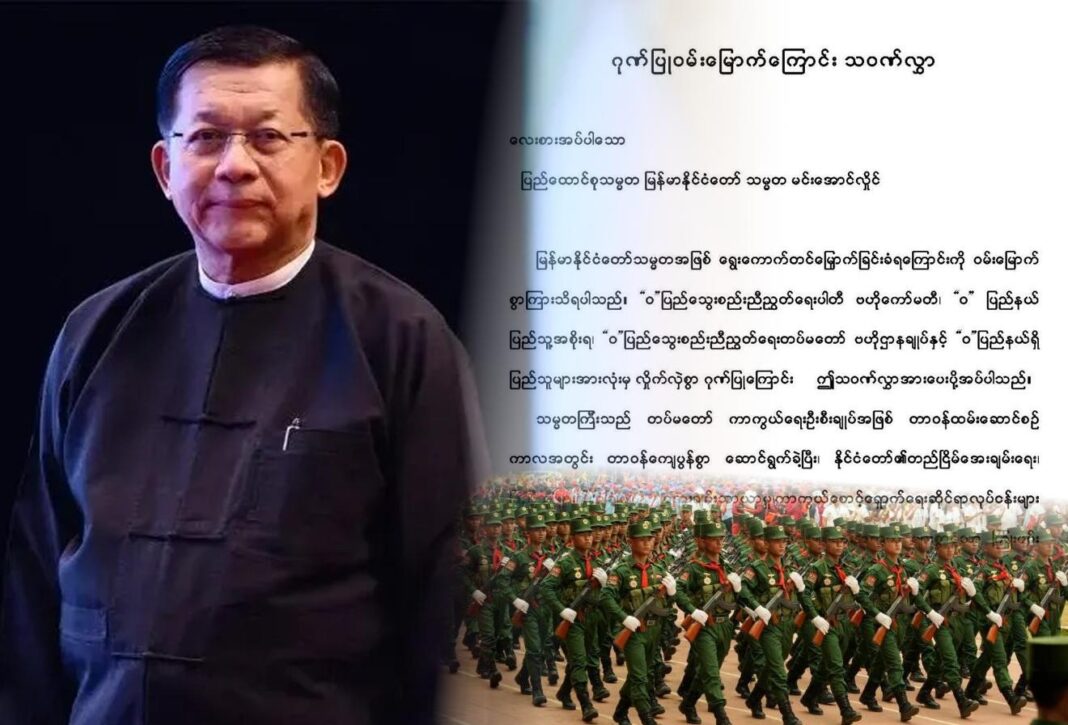 ယနေ့ (ဧပြီလ ၃ ရက်) နေပြည်တော်၌ ကျင်းပခဲ့သည့် ပြည်ထောင်စုလွှတ်တော် အစည်းအဝေးတွင် အတုအယောင် ရွေးကောက်ပွဲမှတဆင့် လွှတ်တော်အမတ် ဖြစ်လာသူများက စစ်အာဏာသိမ်း ခေါင်းဆောင် ဗိုလ်ချုပ်မှူးကြီး မင်းအောင်လှိုင်ကို မြန်မာနိုင်ငံ၏ (၁၁) ယောက်မြောက် သမ္မတအဖြစ် ရွေးချယ်တင်မြှောက်ခဲ့ကြသည်။