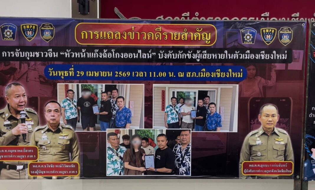 ယနေ့ (ဧပြီလ ၂၉ ရက်) တွင် အမှတ်် (၅) ခရိုင် ရဲတပ်ဖွဲ့မှူး ရဲချုပ် ကရစ်သဖွန် (Krittapon Yisakorn) နှင့် အခြားအဆင့်မြင့်အရာရှိများ၊ သတင်းအချက်အလက်နည်းပညာ ရာဇဝတ်မှုနှိမ်နင်းရေးအဖွဲ့ဝင်များ ဦးဆောင်ကာ အွန်လိုင်းငွေလိမ်လုပ်ငန်းများကို ဦးဆောင်နေသည့်် တရုတ်ဂိုဏ်းခေါင်းဆောင်တစ်ဦးအား ဖမ်းဆီးရမိမှုနှင့် ပတ်သက်ပြီး သတင်းစာရှင်းလင်းပွဲပြုလုပ်ခဲ့သည်။