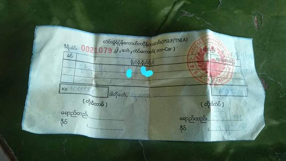 TNLA လက်နက်ကိုင် အတွက် နှစ်စဉ် အကောက်ခွန် အတွက်ကောက်ခံကြောင်း၊ ခရီးသည် တင်ကားများ ၊ ကုန် တင်ကားများ ခရီးသည်တင်ကားများကို ကားအမျိုးအစားပေါ် မူတည်ပြီး ကားသေးများကို တစီးလျှင် တသိန်း၊ ၁၂ ဘီး နှင့် အထက် ကို ကားတစီးလျှင် ၃သိန်းမှ ၅သိန်း ပေးဆောင်ရကြောင်း အိမ်စီးကားကို တစီးလျှင် ၂ သောင်း ခန့် ဆောင်ရကြောင်း ကားသမား အသိုင်းအဝန်းက ပြောပြသည်။